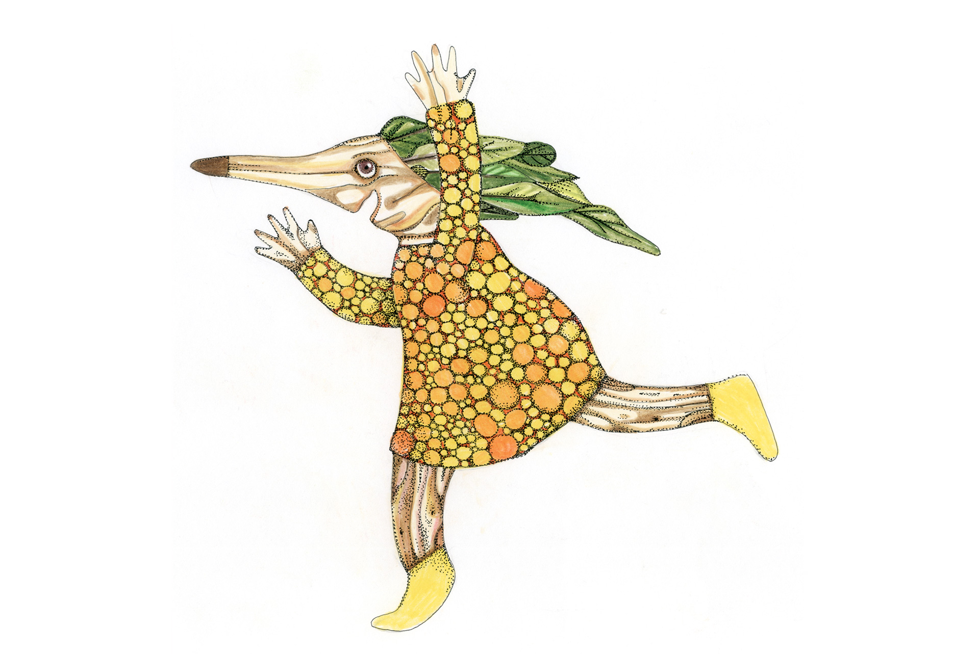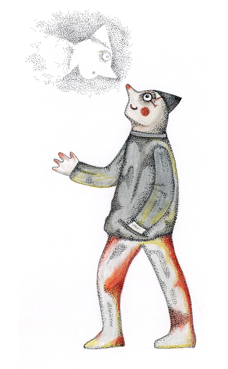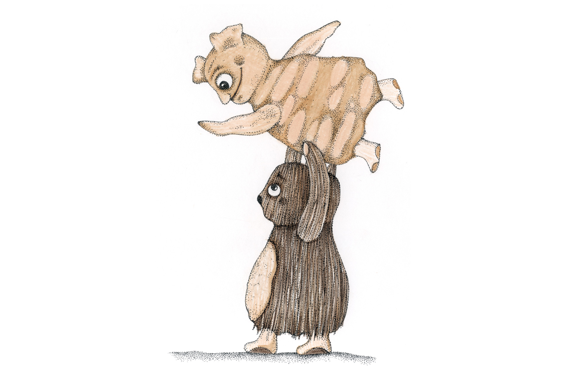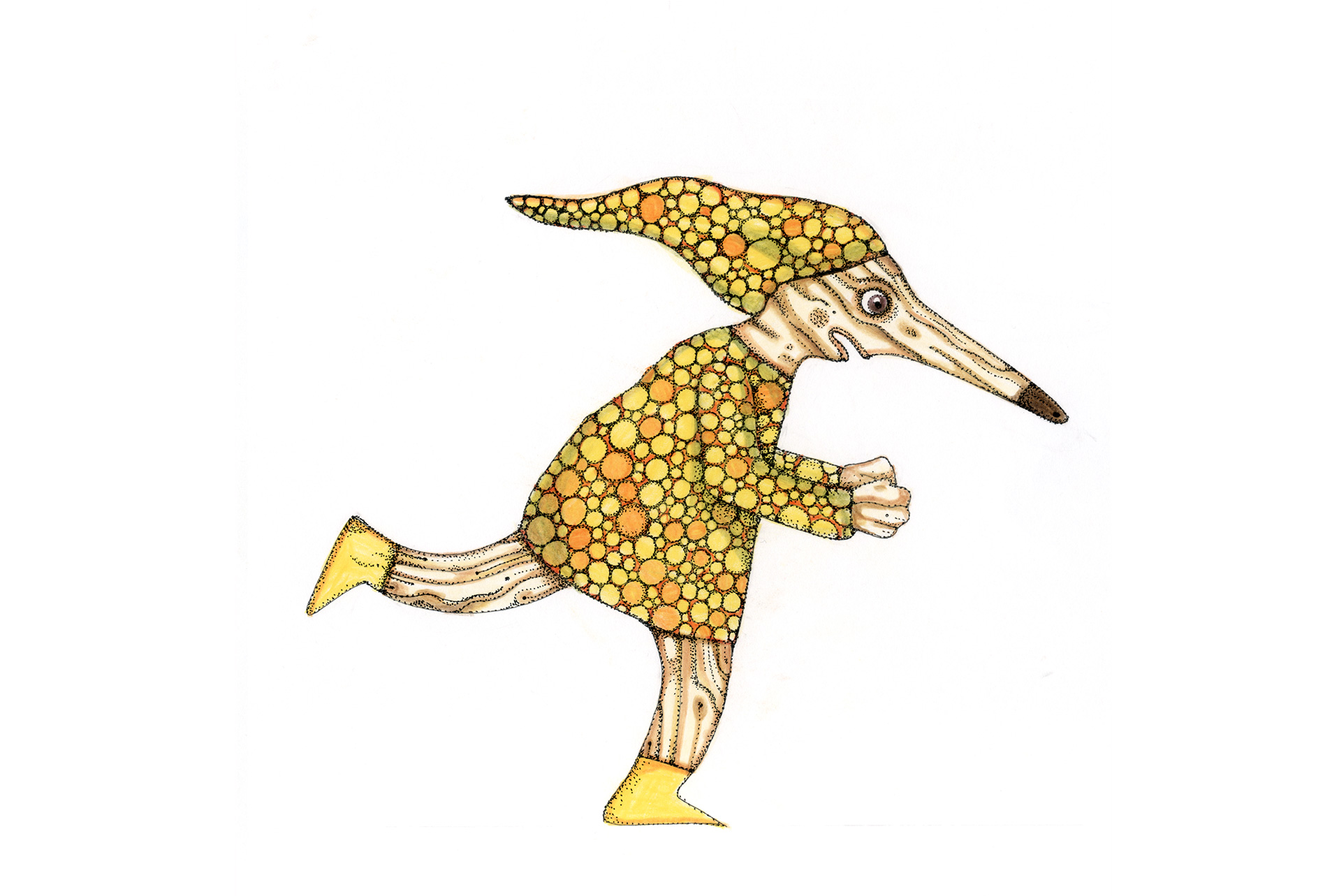 Figuren und Tiere gehen von links nach rechts. Dann – verändert oder auch nicht – kehren sie von rechts nach links zurück. Wo sind sie gewesen? Was ist in der Zwischenzeit passiert? Kehren sie überhaupt zurück und wenn nicht – Warum? Diese Arbeit war ein Teil der Ausstellung »Hin und Zurück« in der Kinder- und Jugendgalerie Weinmeister in Berlin im Jahre 2020. Beide Bilder kommen auf eine Gesamtlänge von je 430 cm.
