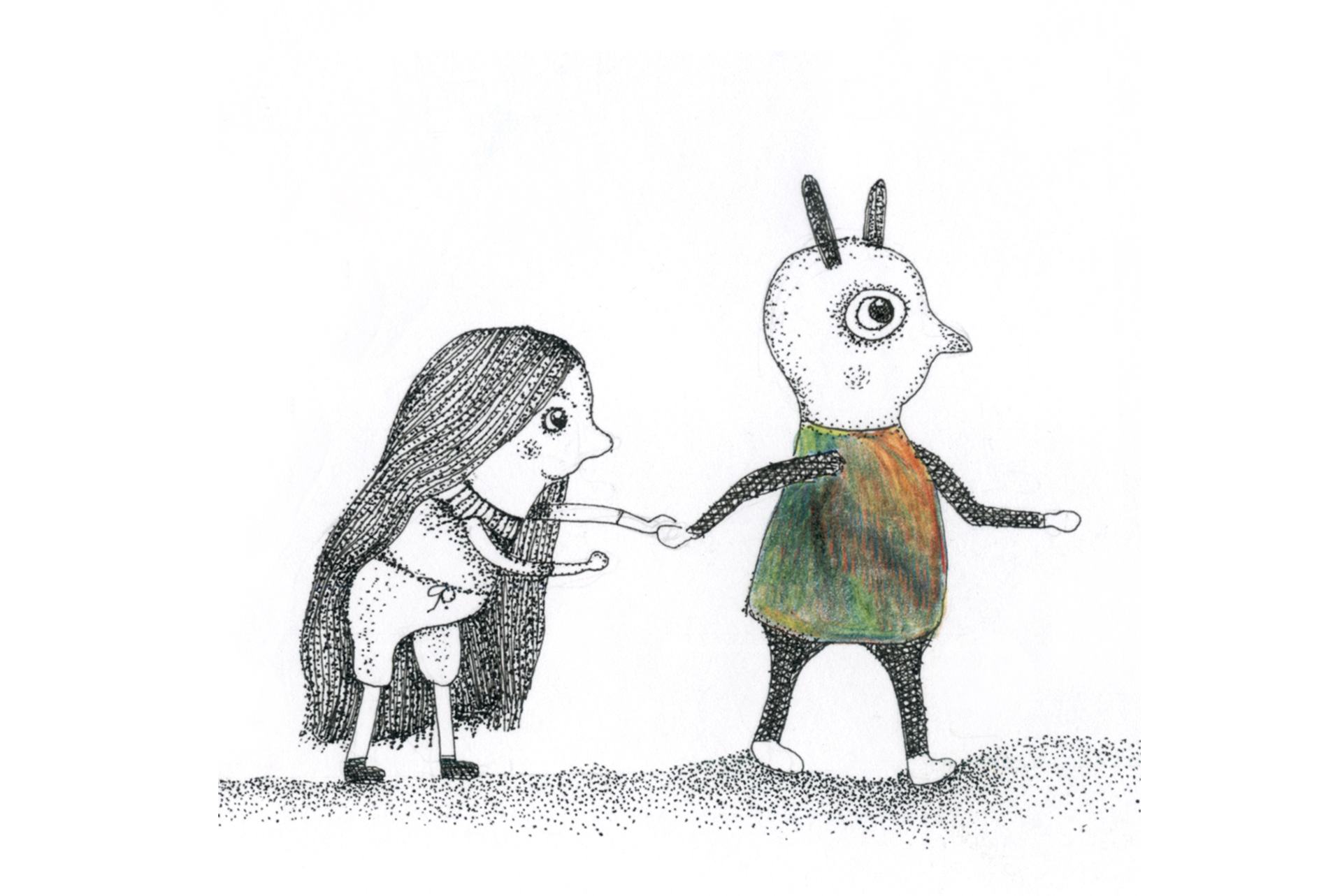 Buntstift und Rapidograph auf Papier, Computerbearbeitet